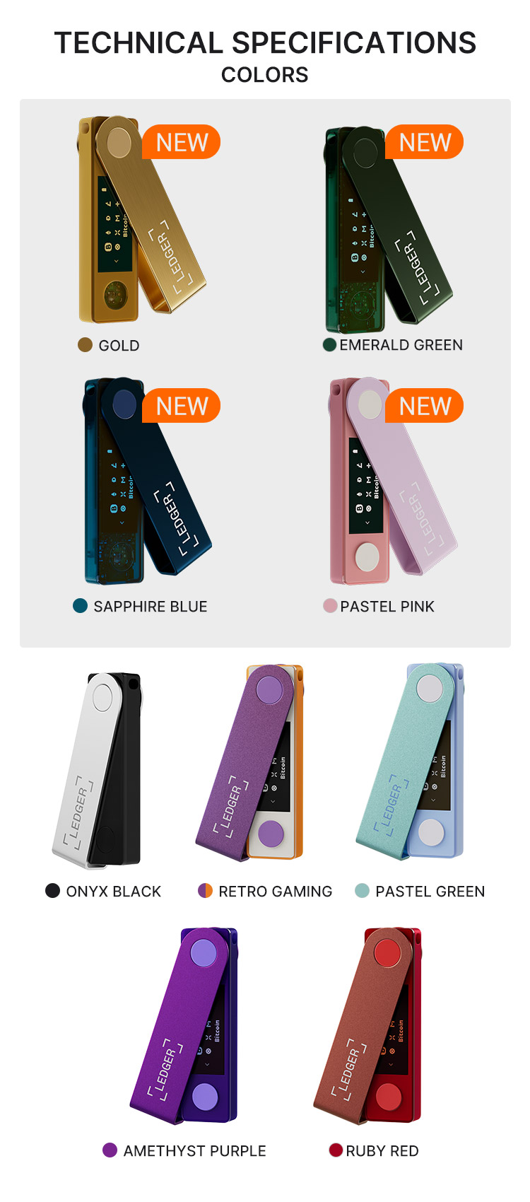 Manage your crypto and NFTs on the go with the Ledger Nano X. This hardware wallet connects seamlessly to your phone via Bluetooth and features a large screen for easy navigation. Safely store and manage thousands of coins, including Bitcoin and Ethereum, using the Ledger Live app. With our Secure Element chip, your assets are protected offline from hackers. As an official retailer, we offer 100% authentic products with a 15-day return policy. Get rewarded with $30 in BTC for securing your assets the right way. Choose from stylish colors like Onyx Black, Cosmic Purple, Ruby Red, and more.