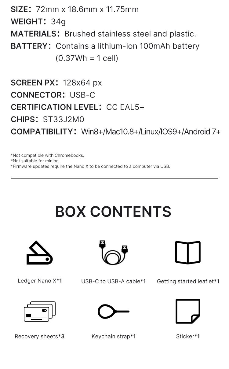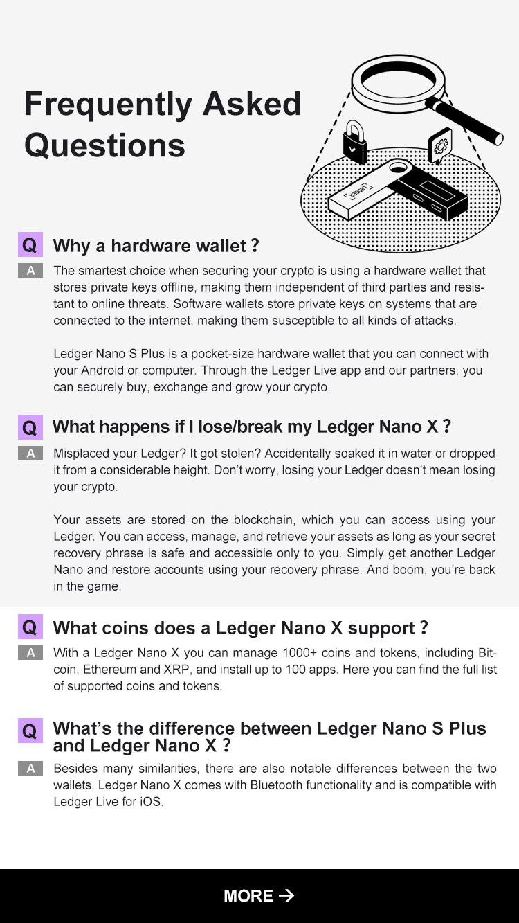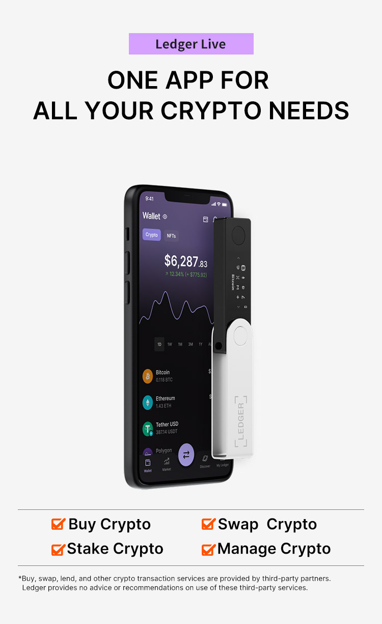 The Ledger Nano X is the perfect hardware wallet for managing your crypto & NFTs on the go. It connects to your phone with Bluetooth and has a large screen for ease of use. Manage NFTs and 1000s of coins including Bitcoin, Ethereum and more. Use your Ledger with the Ledger Live app to access a world of crypto services and dApps. Secure your crypto and NFTs far from hackers' reach.