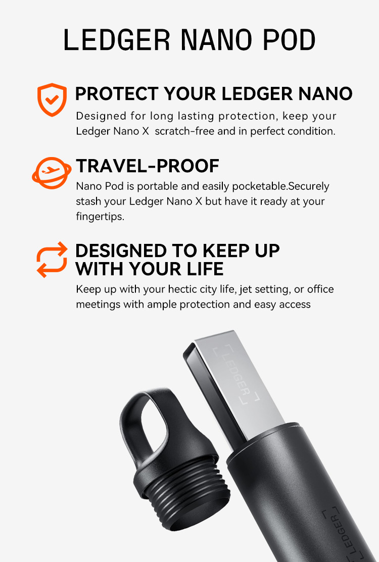 Nano Pod is portable and easily pocketable.Securely stash your Ledger Nano X but have it ready at your fingertips.